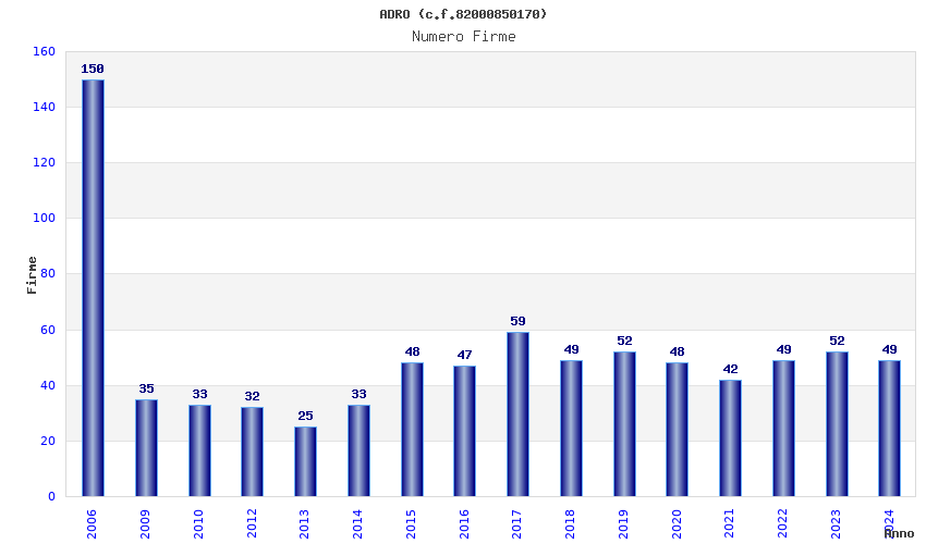 Anno Firme Importi Media Naz. Reg. Prov. Comu.