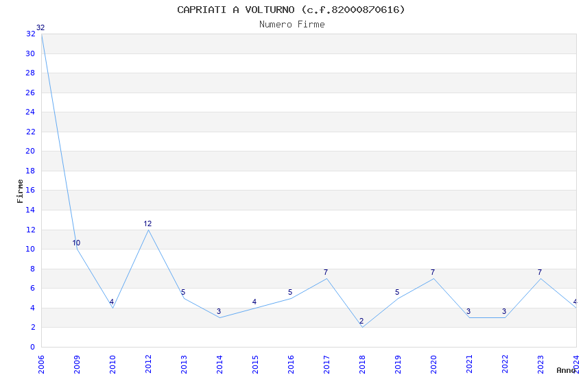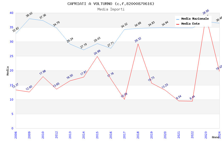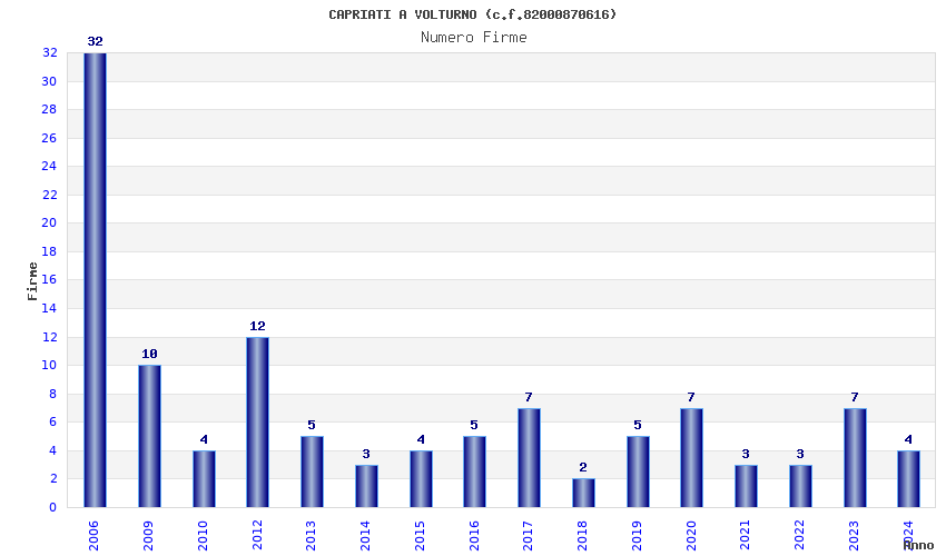 | Anno | Firme | Importi | Media | Naz. | Reg. | Prov. | Comu. |