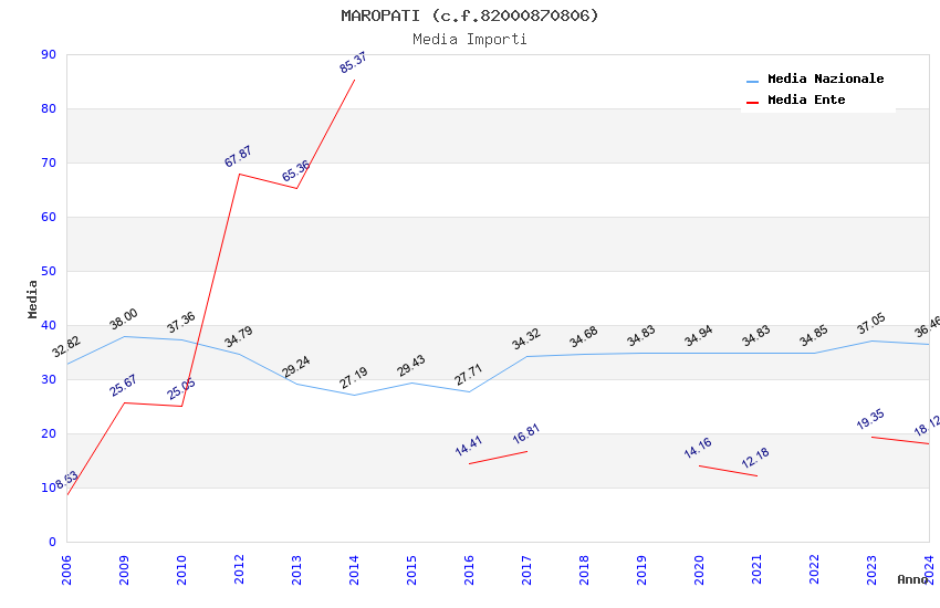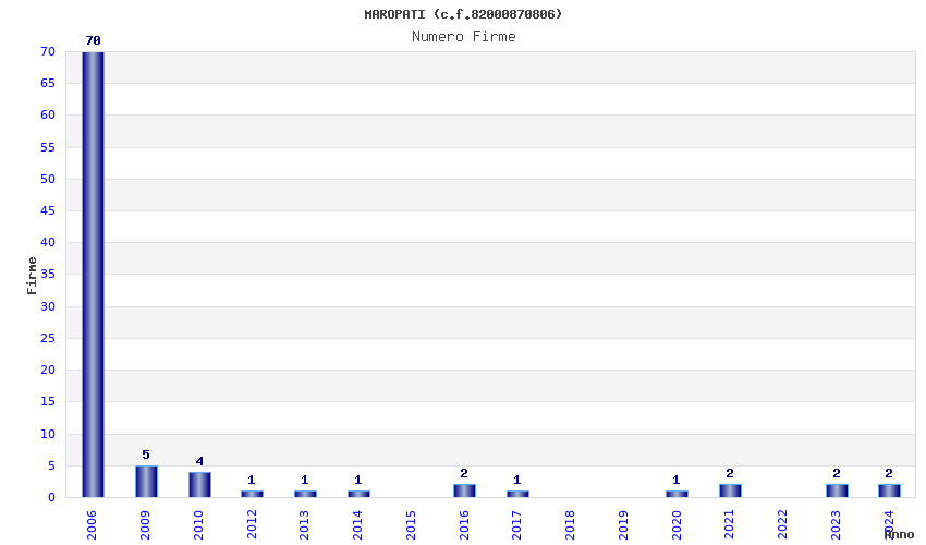 | Anno | Firme | Importi | Media | Naz. | Reg. | Prov. | Comu. |