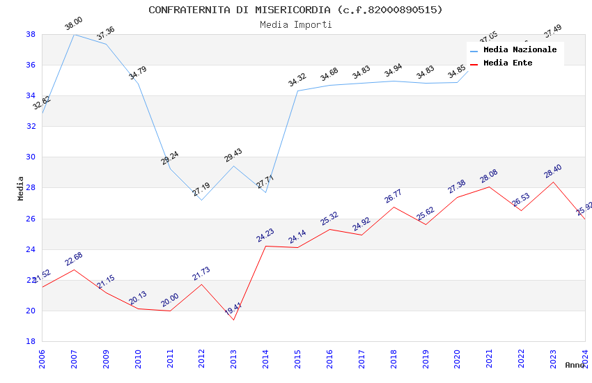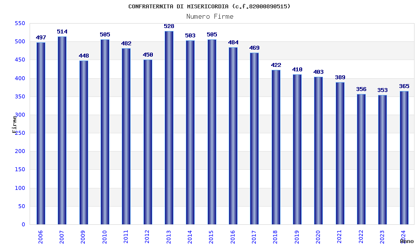 | Anno | Firme | Importi | Media | Naz. | Reg. | Prov. | Comu. |