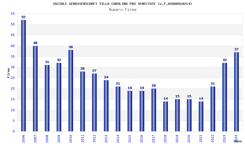 | Anno | Firme | Importi | Media | Naz. | Reg. | Prov. | Comu. |