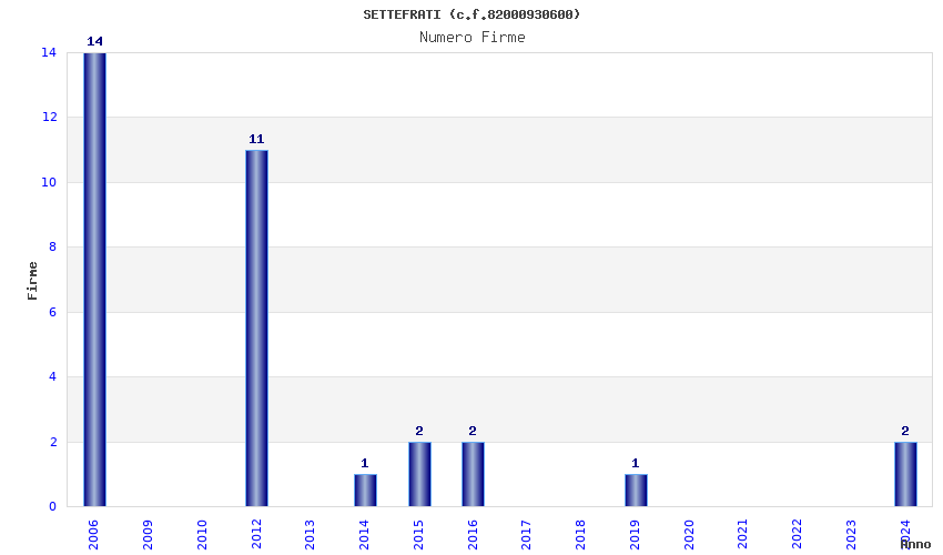 | Anno | Firme | Importi | Media | Naz. | Reg. | Prov. | Comu. |