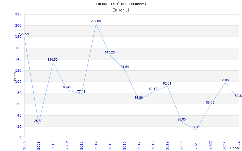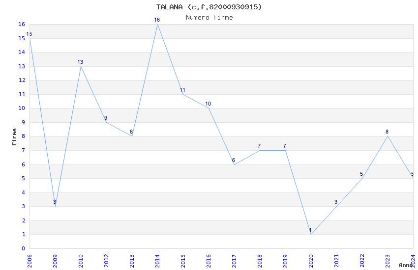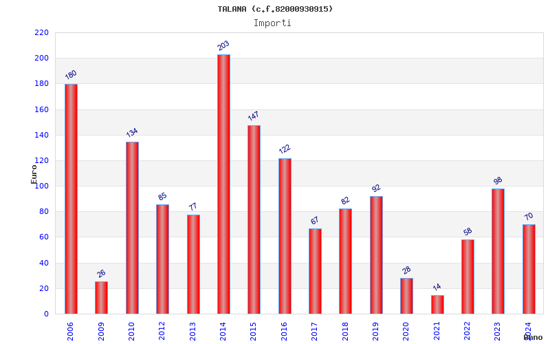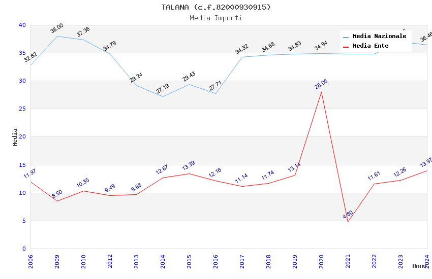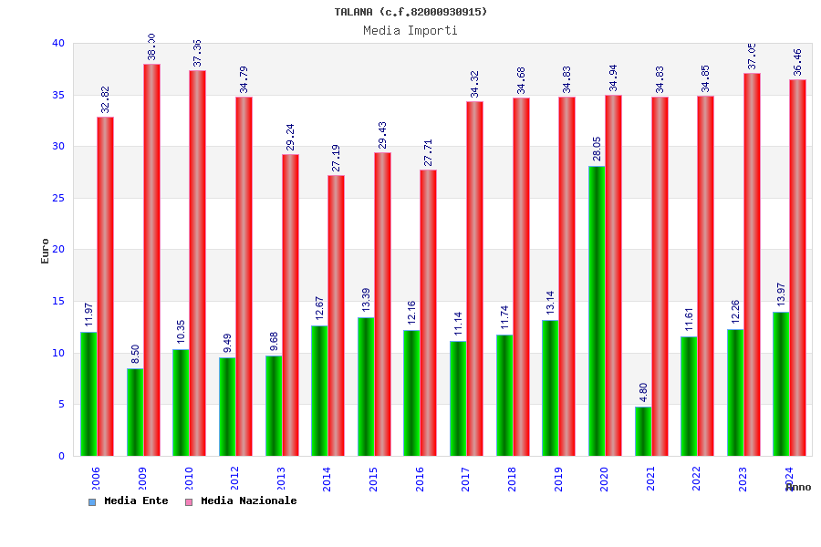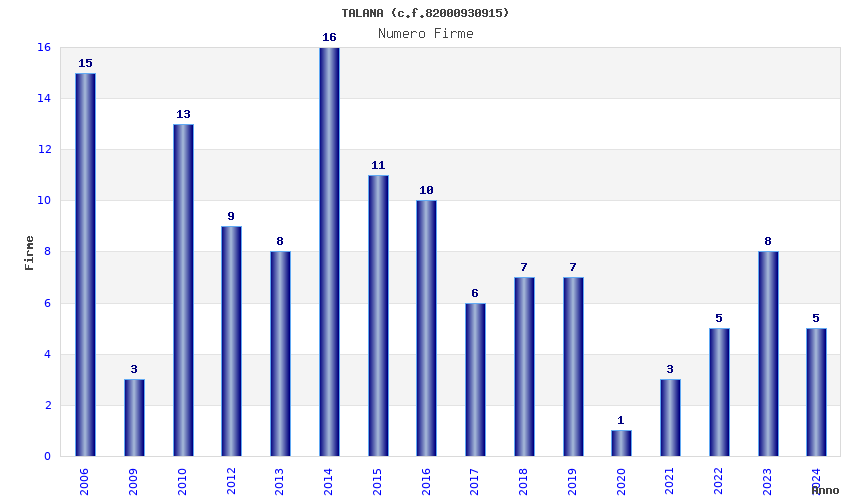 | Anno | Firme | Importi | Media | Naz. | Reg. | Prov. | Comu. |