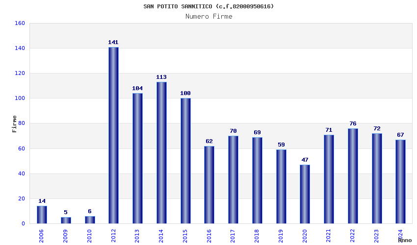 Anno Firme Importi Media Naz. Reg. Prov. Comu.