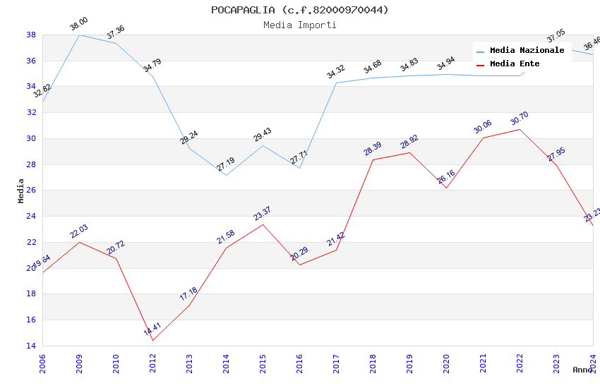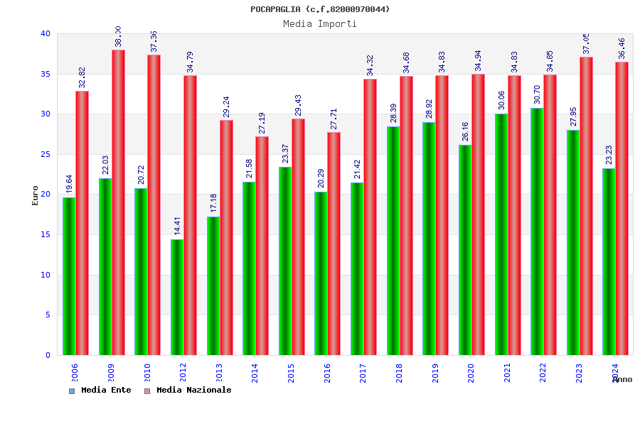 | Anno | Firme | Importi | Media | Naz. | Reg. | Prov. | Comu. |