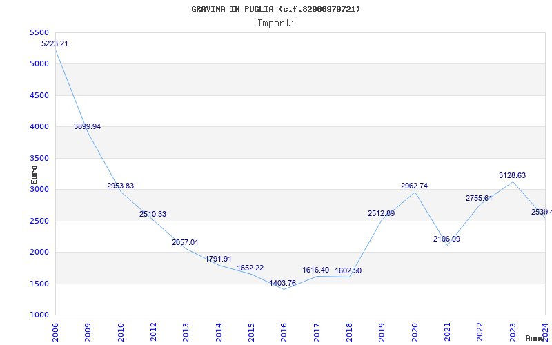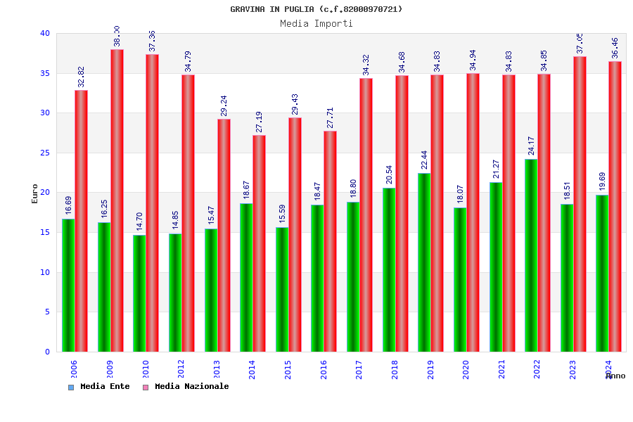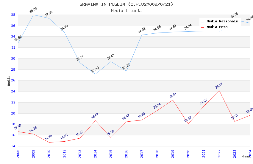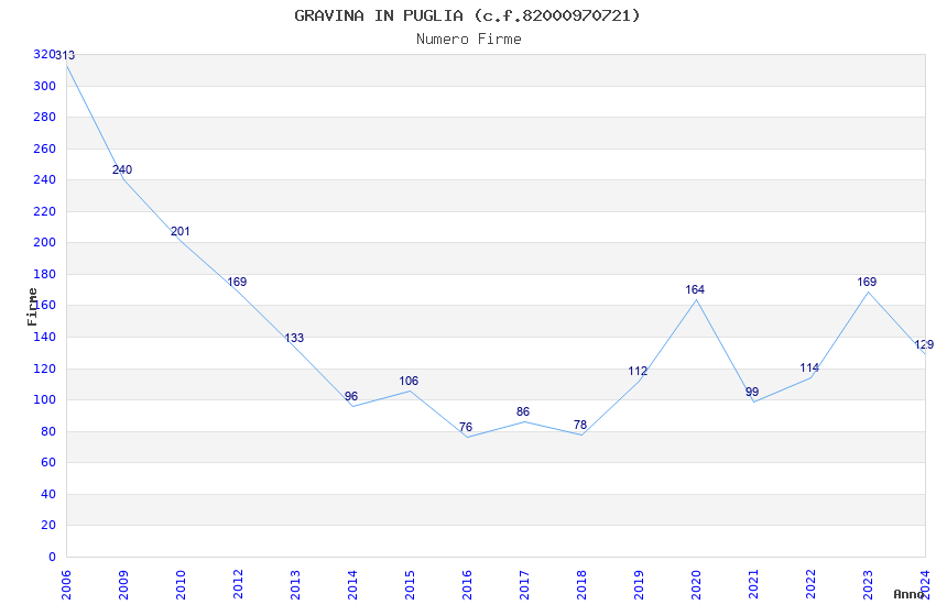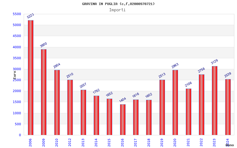 | Anno | Firme | Importi | Media | Naz. | Reg. | Prov. | Comu. |