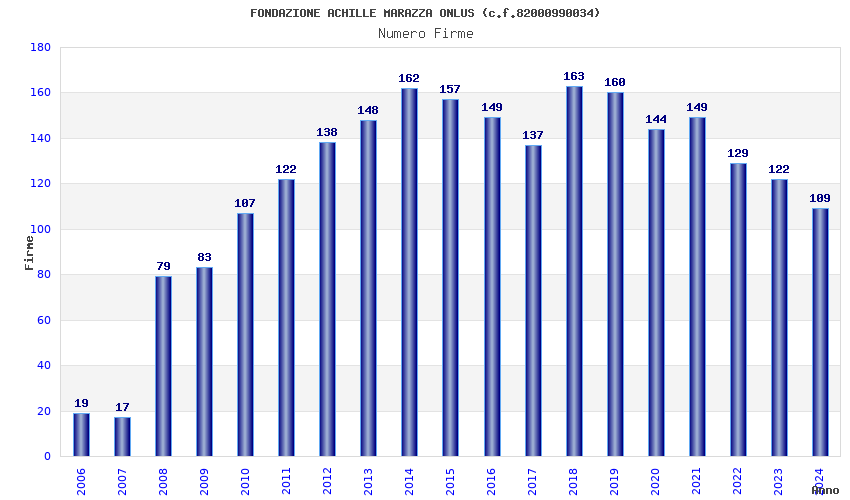 | Anno | Firme | Importi | Media | Naz. | Reg. | Prov. | Comu. |