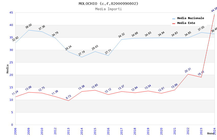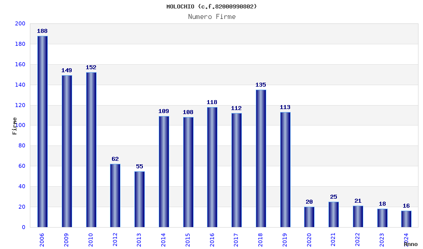 | Anno | Firme | Importi | Media | Naz. | Reg. | Prov. | Comu. |