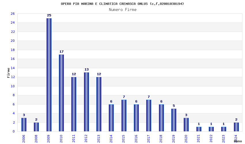 | Anno | Firme | Importi | Media | Naz. | Reg. | Prov. | Comu. |