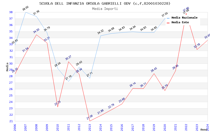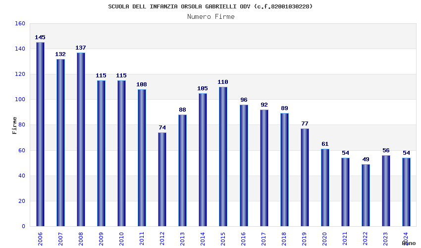 | Anno | Firme | Importi | Media | Naz. | Reg. | Prov. | Comu. |