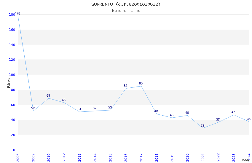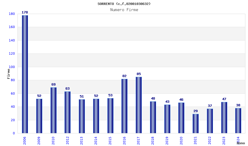 | Anno | Firme | Importi | Media | Naz. | Reg. | Prov. | Comu. |