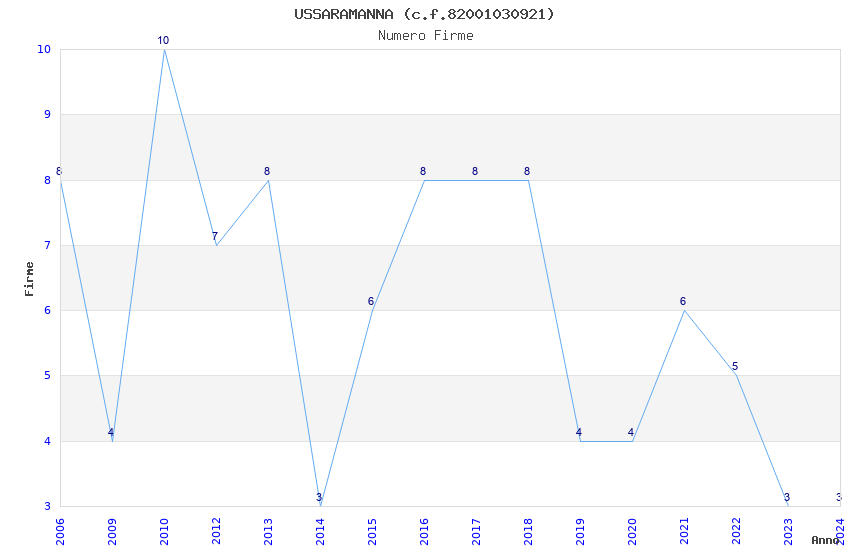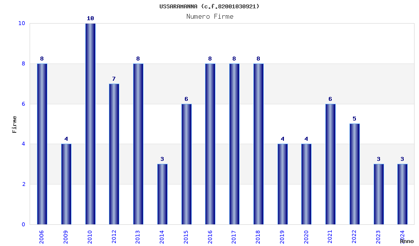 | Anno | Firme | Importi | Media | Naz. | Reg. | Prov. | Comu. |