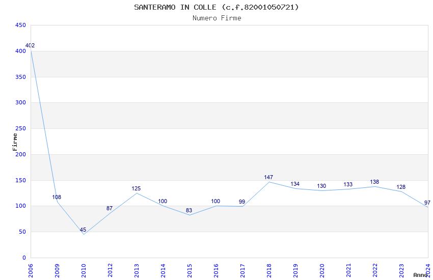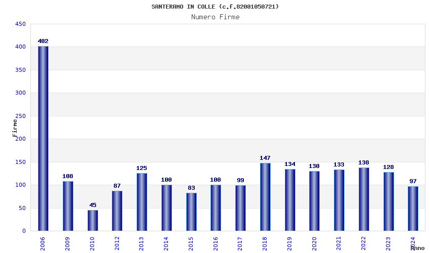 | Anno | Firme | Importi | Media | Naz. | Reg. | Prov. | Comu. |