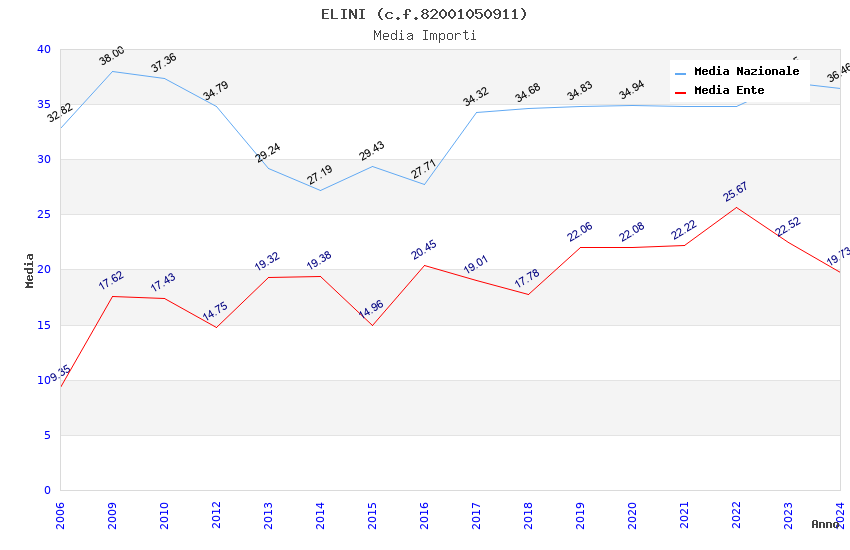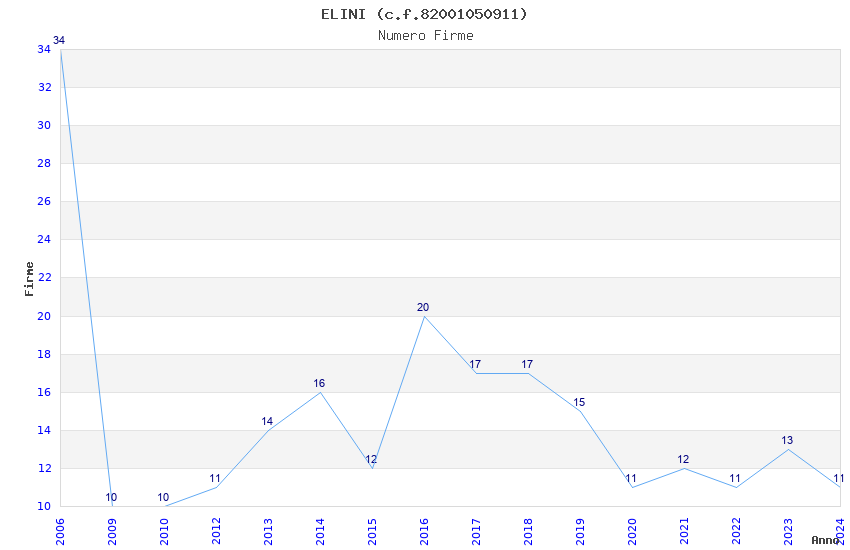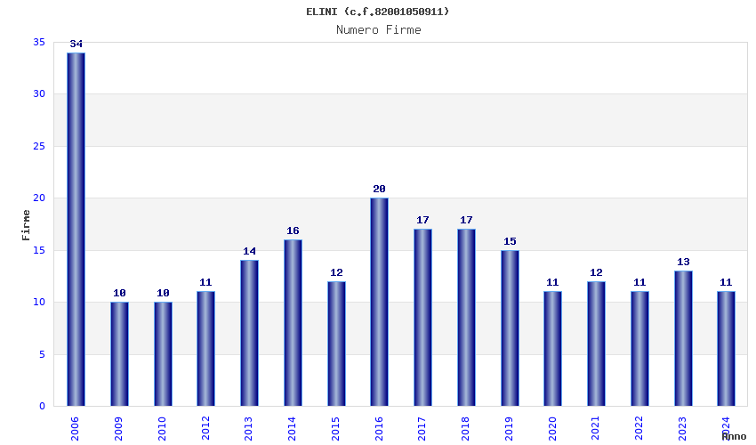 | Anno | Firme | Importi | Media | Naz. | Reg. | Prov. | Comu. |