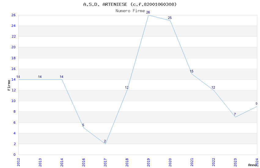 | 2013 | 14 | 367,09 | 26,22 | 37.570 | 1.087 | 487 | 4 |