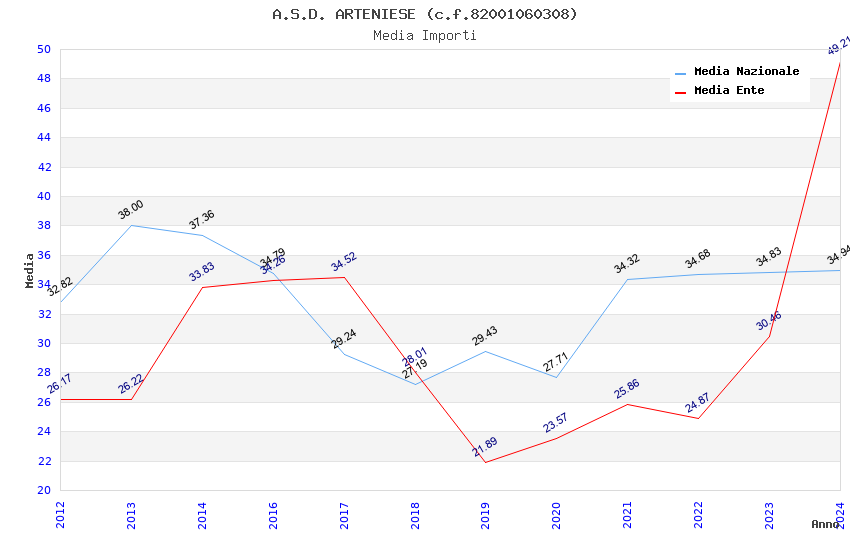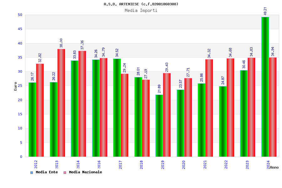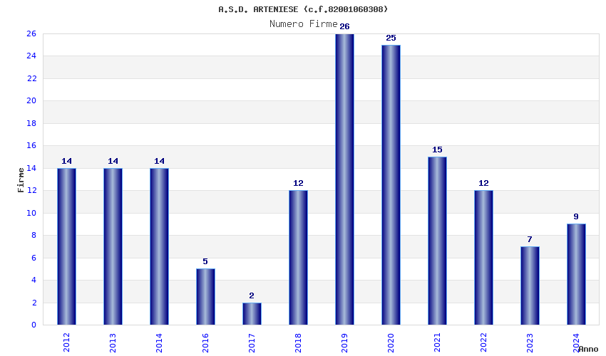 | Anno | Firme | Importi | Media | Naz. | Reg. | Prov. | Comu. |