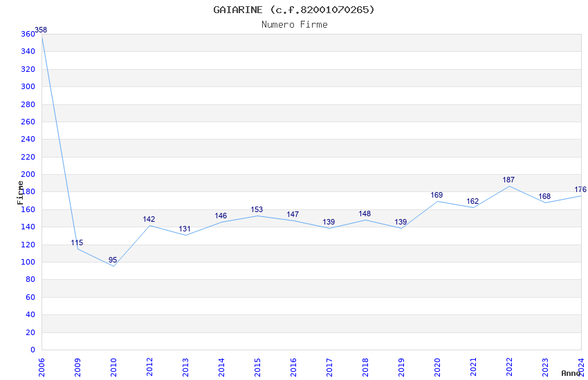 | 2024 | 176 | 4.114,33 | 23,38 | 13.065 | 1.199 | 199 | 1 |