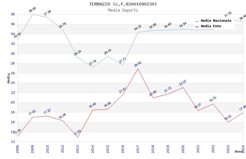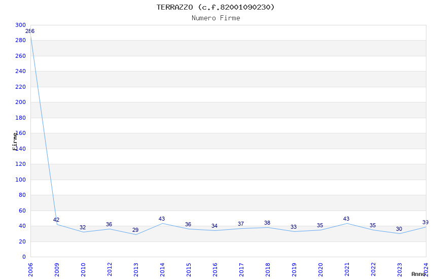 | Anno | Firme | Importi | Media | Naz. | Reg. | Prov. | Comu. |