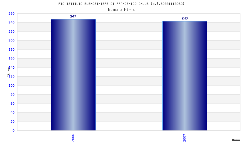 | Anno | Firme | Importi | Media | Naz. | Reg. | Prov. | Comu. |