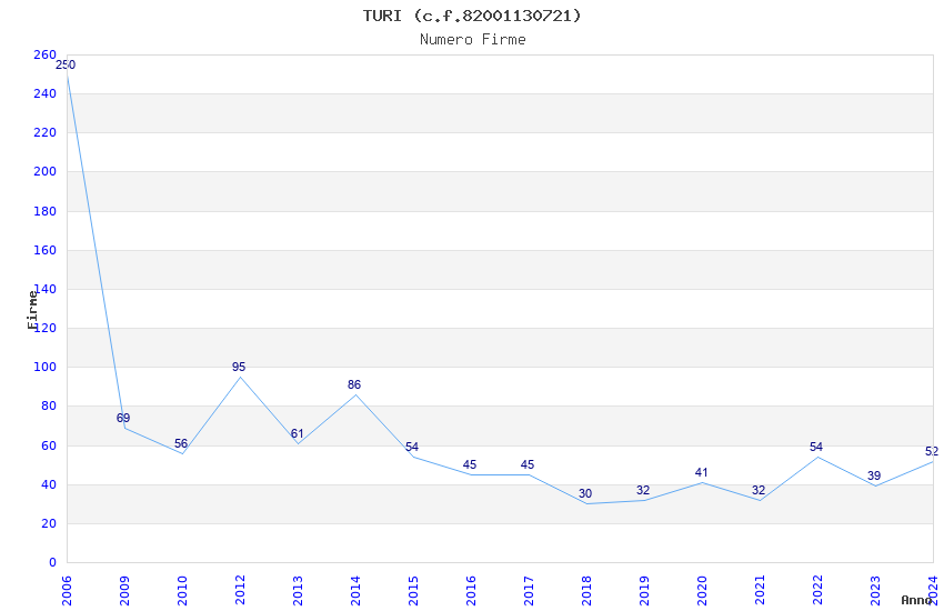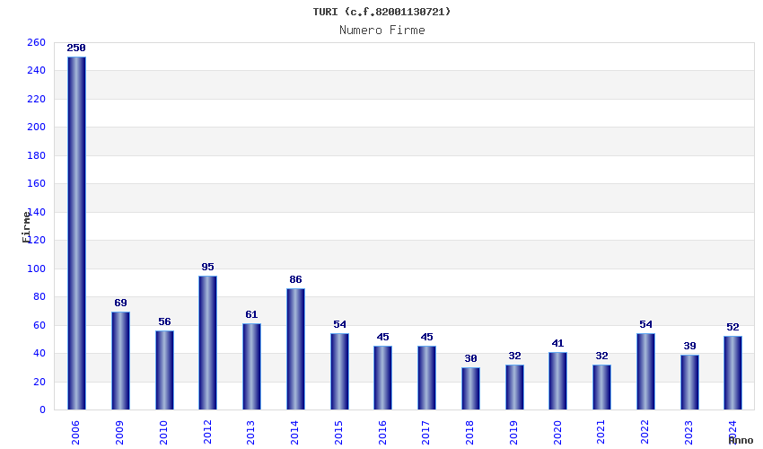 | Anno | Firme | Importi | Media | Naz. | Reg. | Prov. | Comu. |
