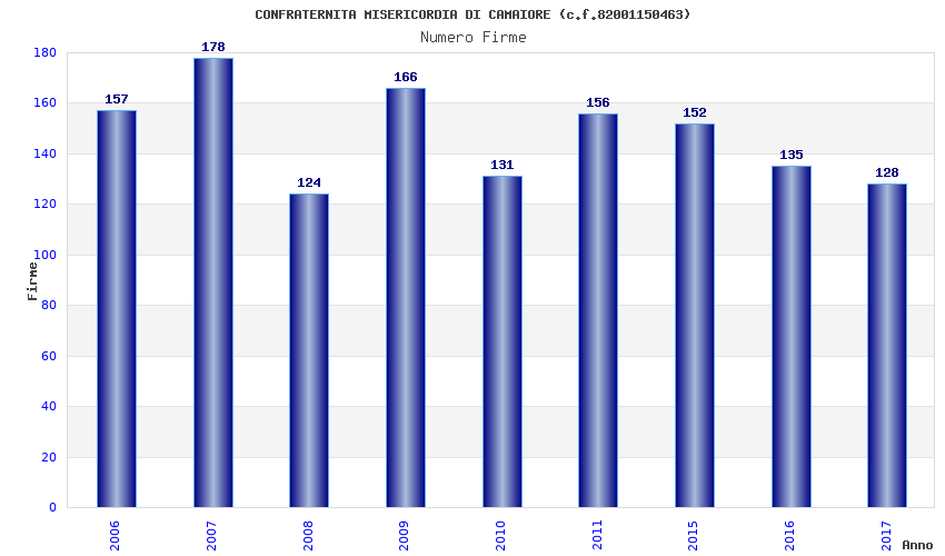 | Anno | Firme | Importi | Media | Naz. | Reg. | Prov. | Comu. |