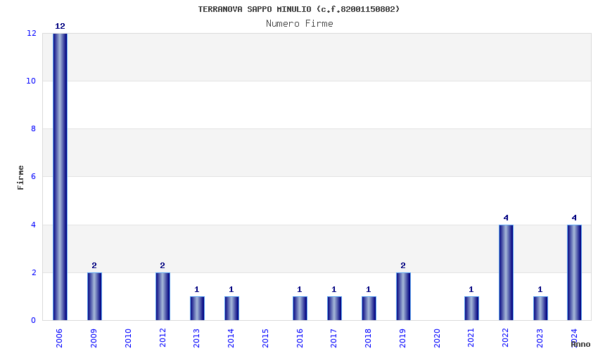 | Anno | Firme | Importi | Media | Naz. | Reg. | Prov. | Comu. |