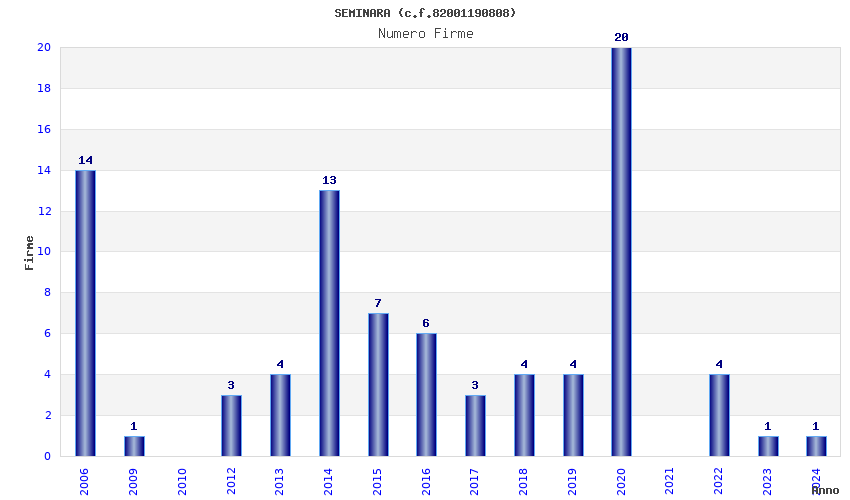 | Anno | Firme | Importi | Media | Naz. | Reg. | Prov. | Comu. |