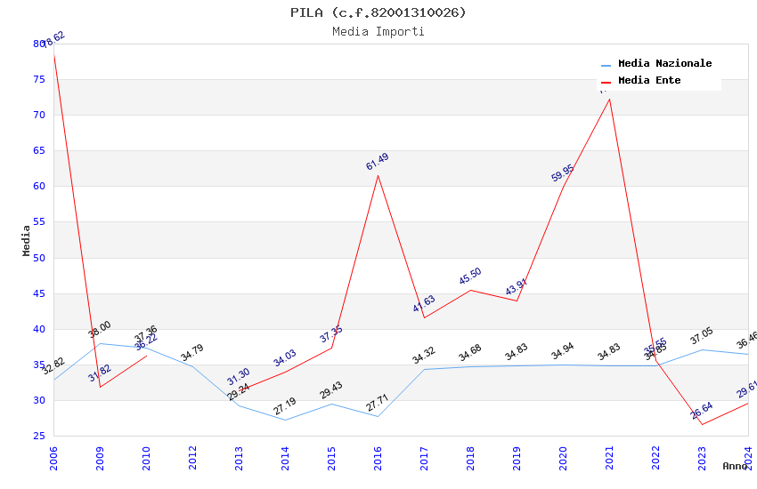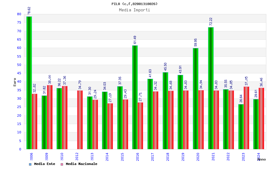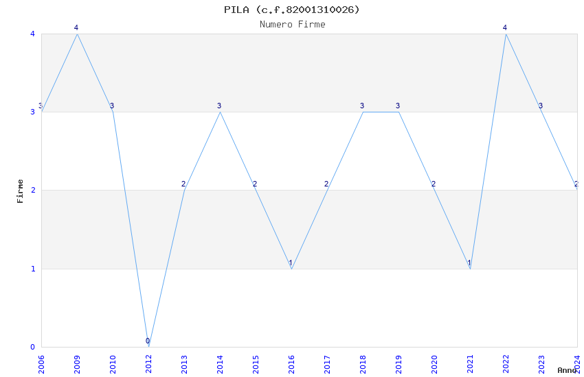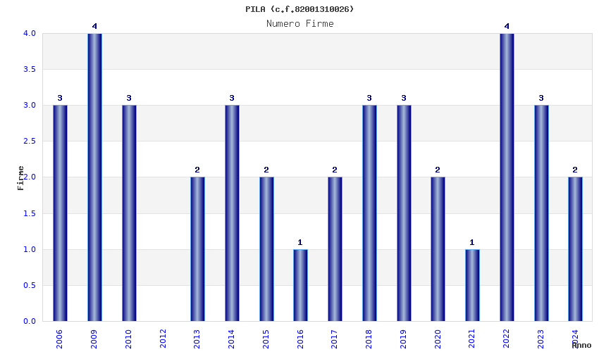 | Anno | Firme | Importi | Media | Naz. | Reg. | Prov. | Comu. |