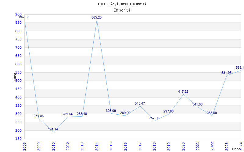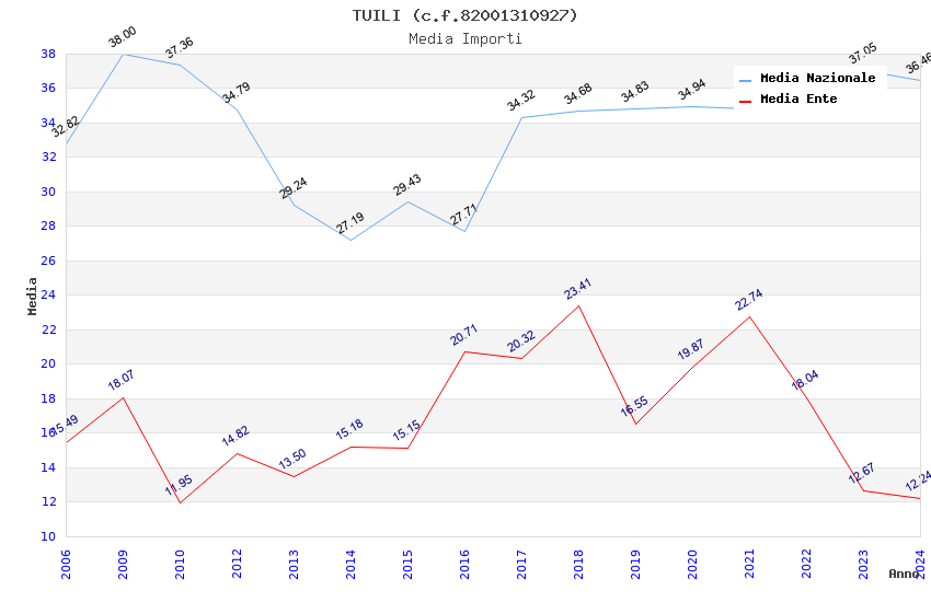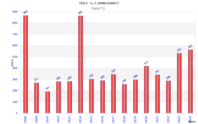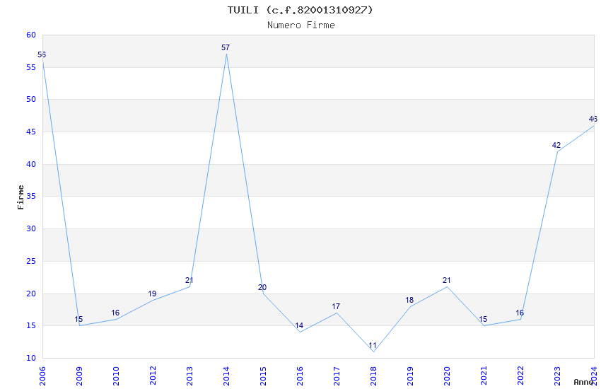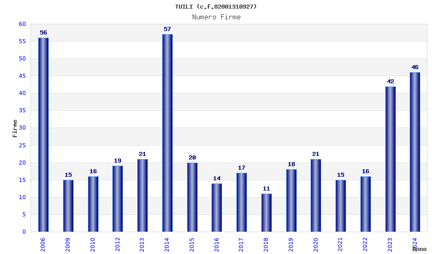 | Anno | Firme | Importi | Media | Naz. | Reg. | Prov. | Comu. |