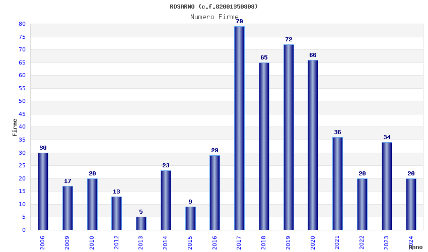 | Anno | Firme | Importi | Media | Naz. | Reg. | Prov. | Comu. |