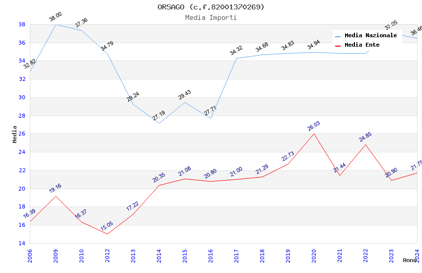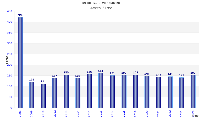 | Anno | Firme | Importi | Media | Naz. | Reg. | Prov. | Comu. |