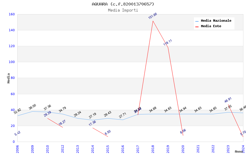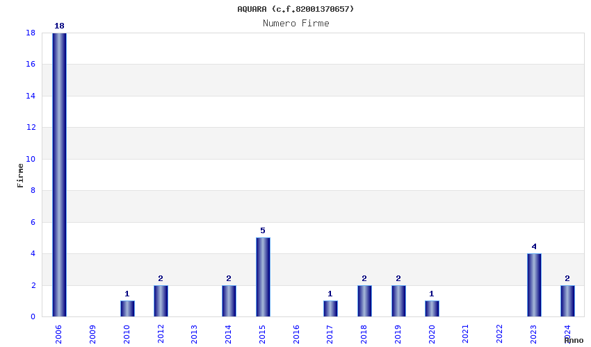 | Anno | Firme | Importi | Media | Naz. | Reg. | Prov. | Comu. |