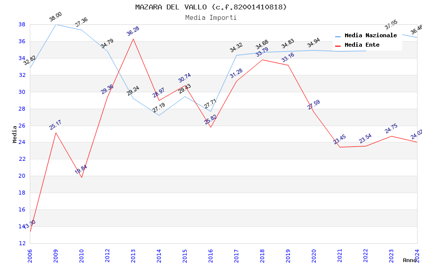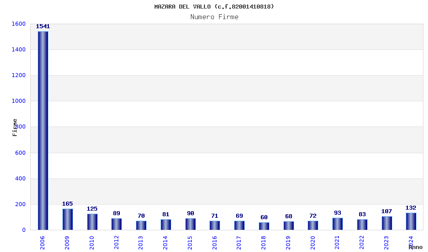 | Anno | Firme | Importi | Media | Naz. | Reg. | Prov. | Comu. |