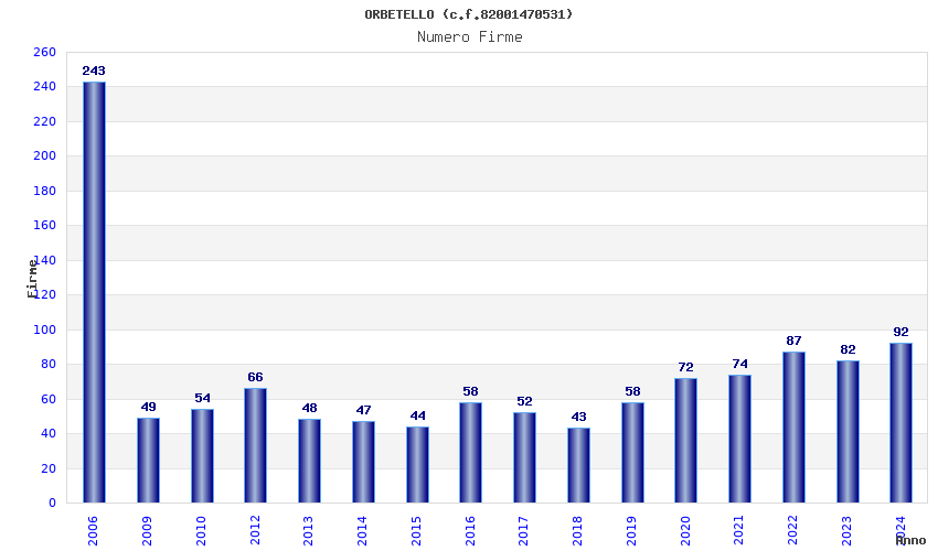 | 2006 | 243 | 5.641,61 | 23,22 | 7.510 | 490 | 20 | 1 |
