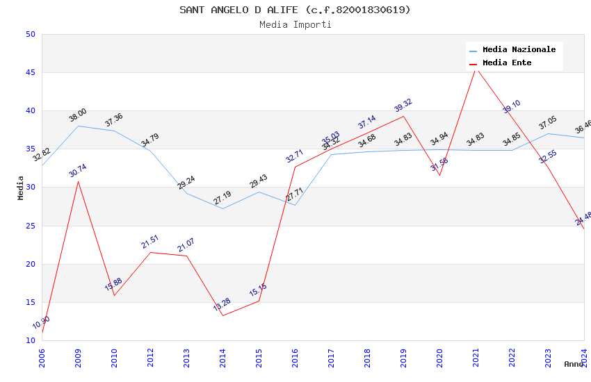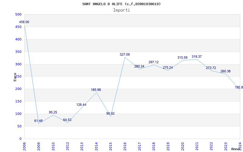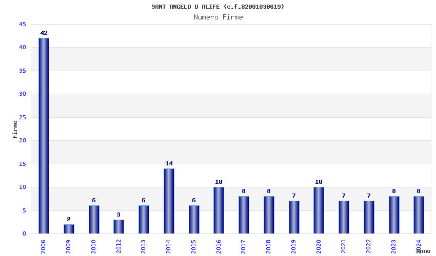| Anno | Firme | Importi | Media | Naz. | Reg. | Prov. | Comu. |