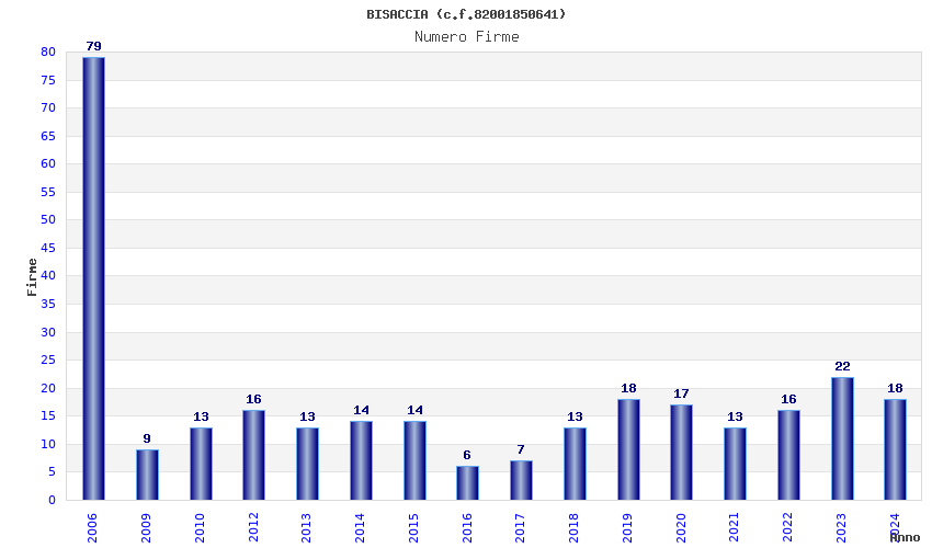 | Anno | Firme | Importi | Media | Naz. | Reg. | Prov. | Comu. |