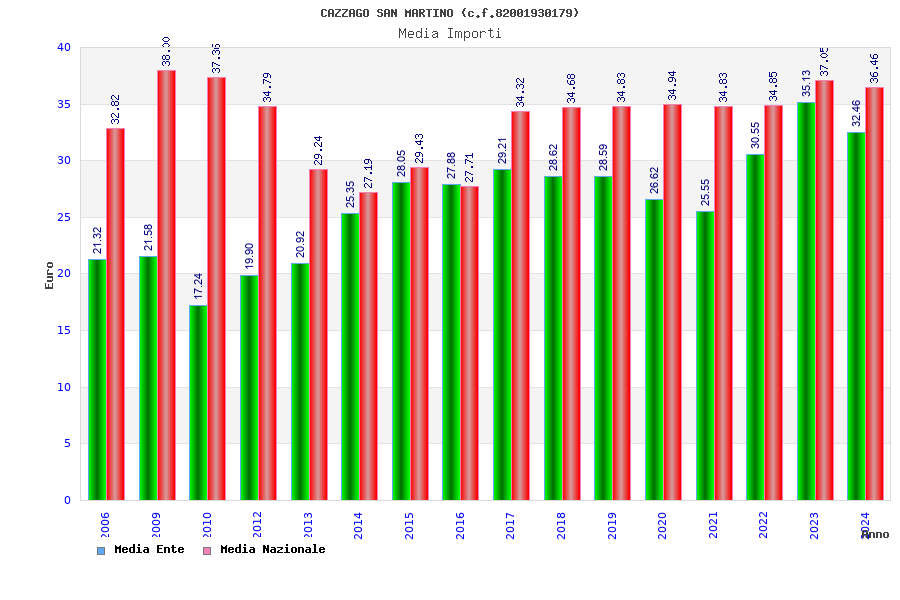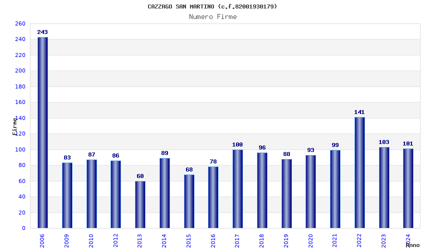 | Anno | Firme | Importi | Media | Naz. | Reg. | Prov. | Comu. |