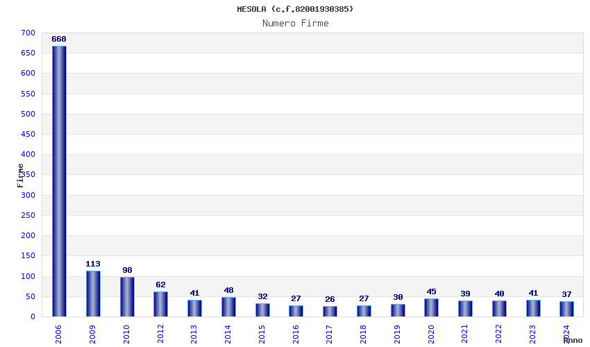 Anno Firme Importi Media Naz. Reg. Prov. Comu.