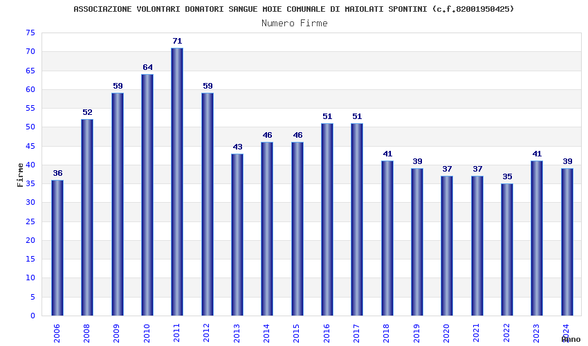 | Anno | Firme | Importi | Media | Naz. | Reg. | Prov. | Comu. |