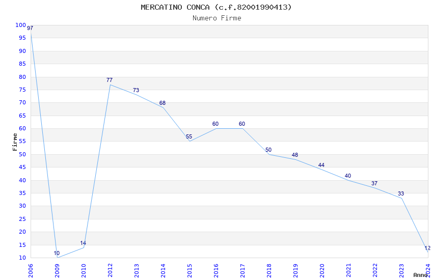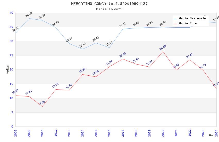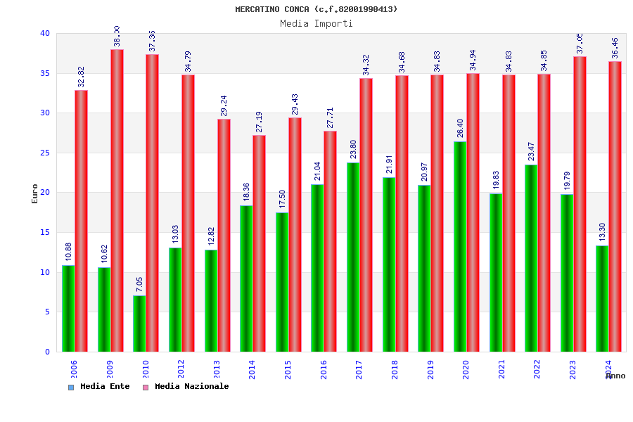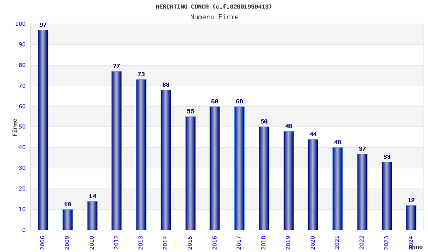 | Anno | Firme | Importi | Media | Naz. | Reg. | Prov. | Comu. |