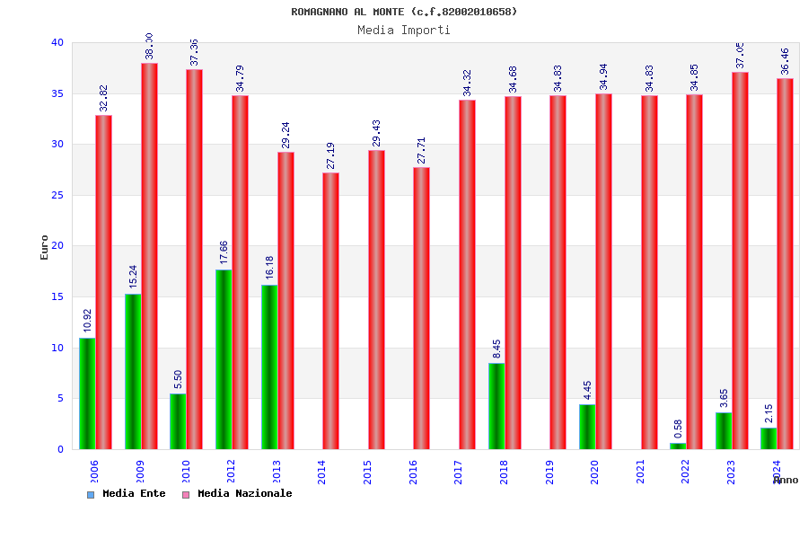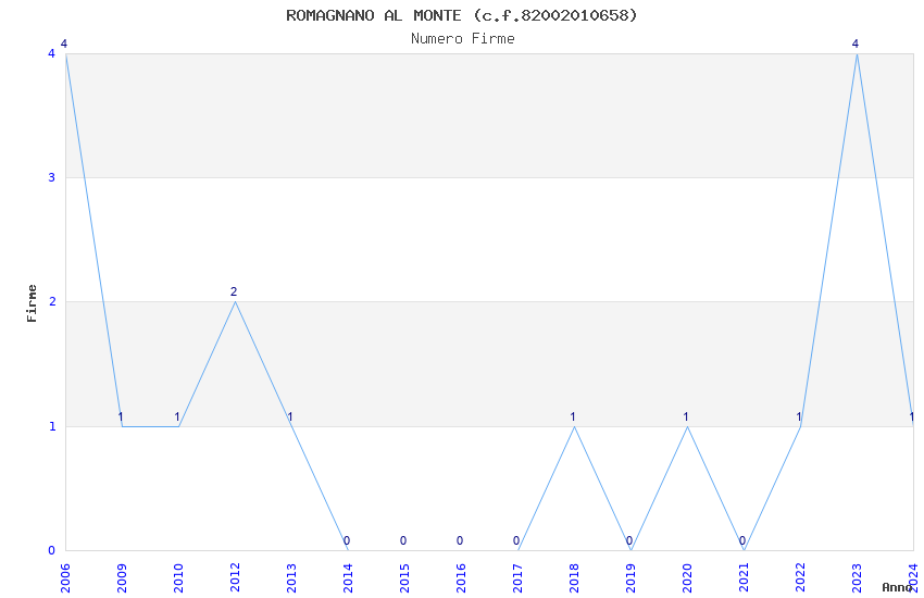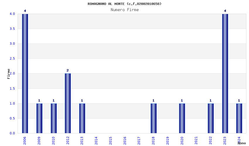| Anno | Firme | Importi | Media | Naz. | Reg. | Prov. | Comu. |