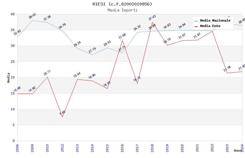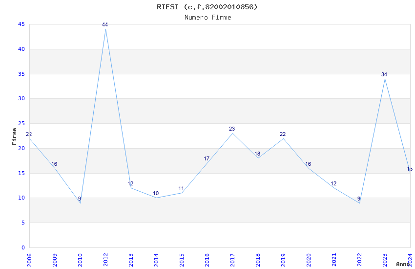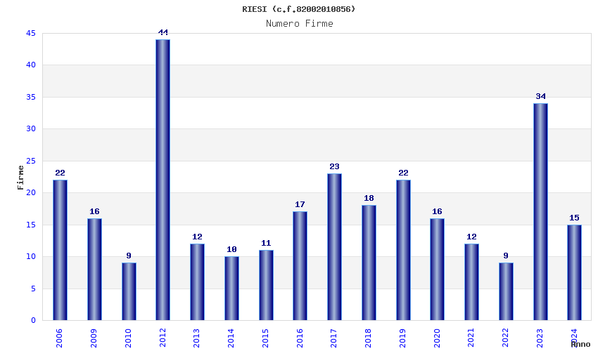| Anno | Firme | Importi | Media | Naz. | Reg. | Prov. | Comu. |