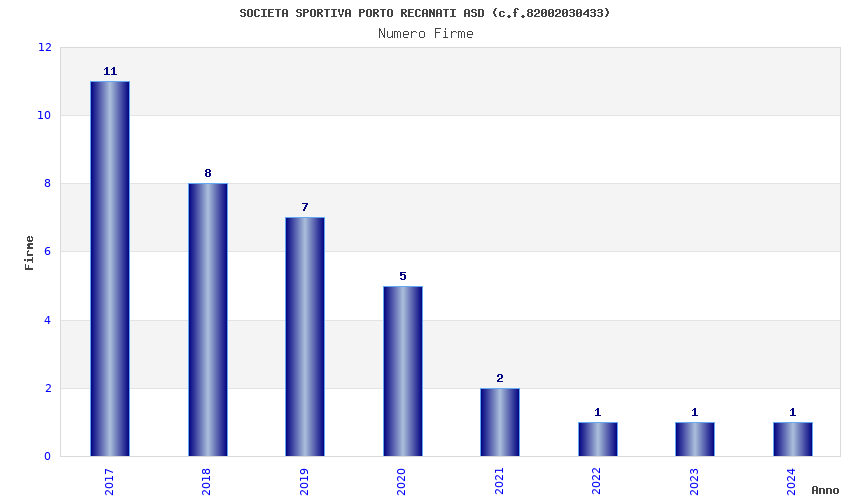 | Anno | Firme | Importi | Media | Naz. | Reg. | Prov. | Comu. |