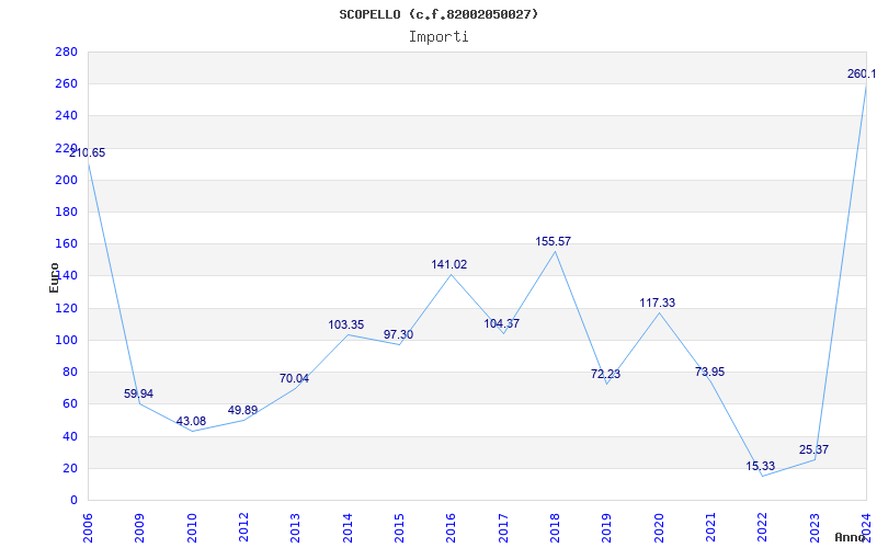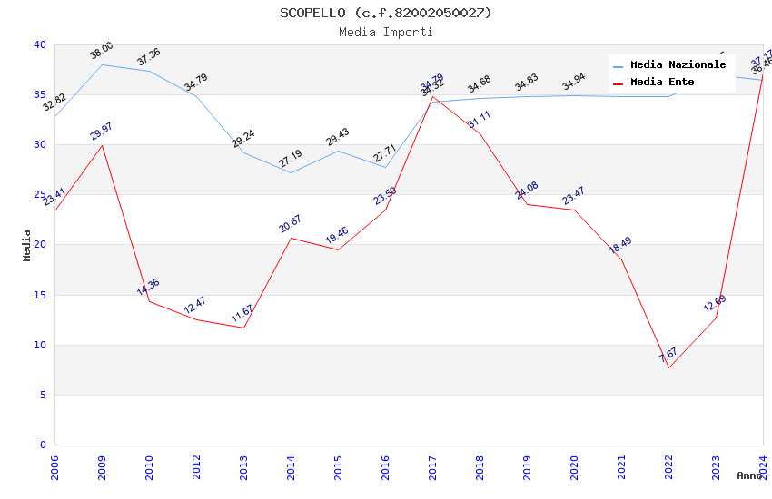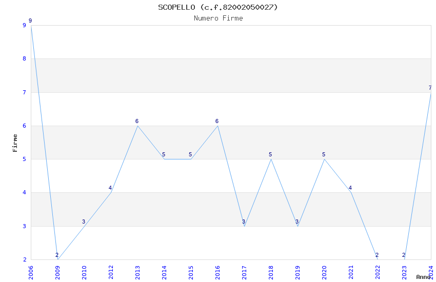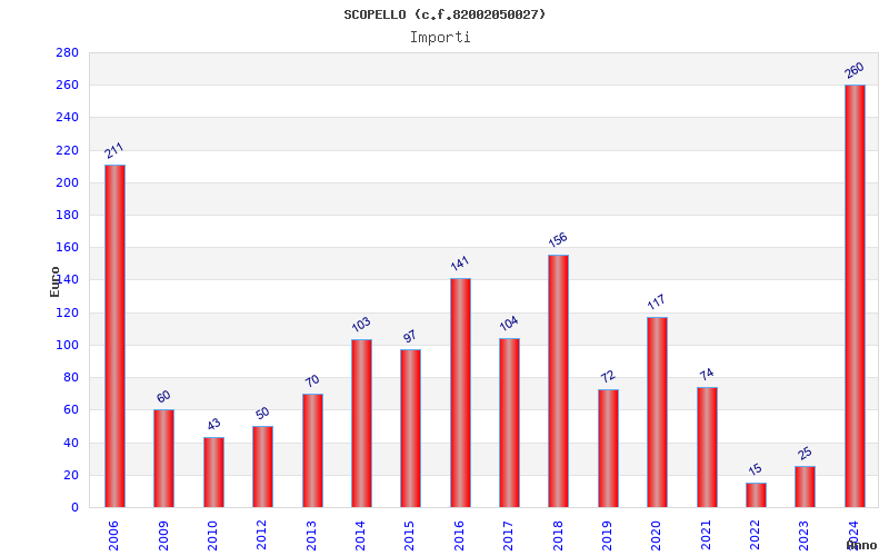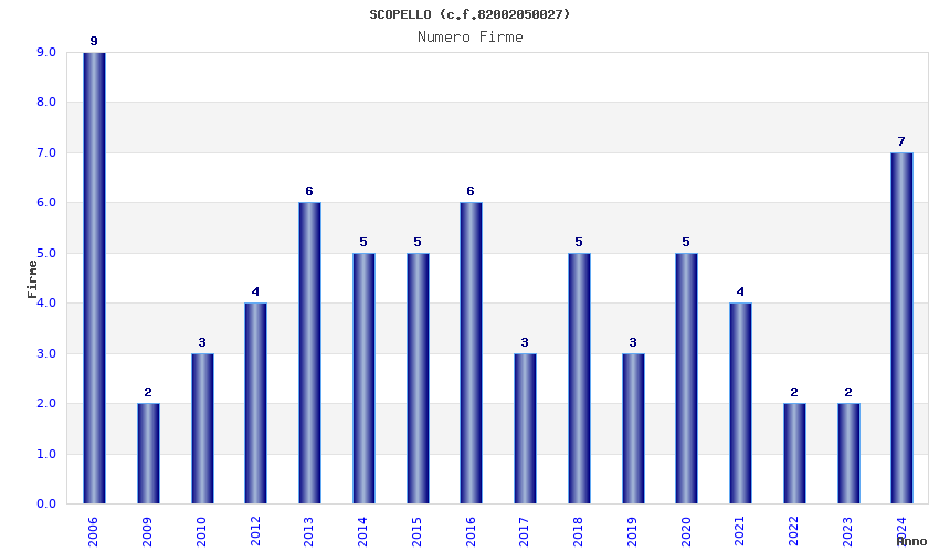 | Anno | Firme | Importi | Media | Naz. | Reg. | Prov. | Comu. |