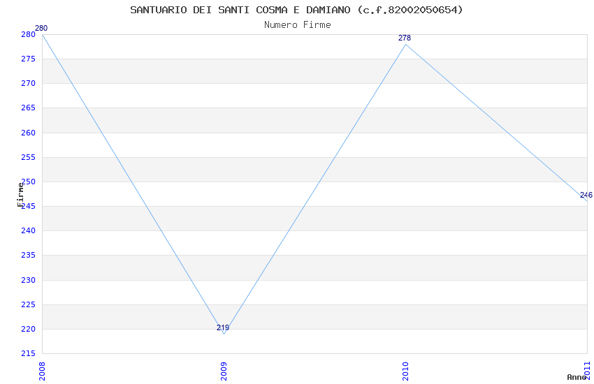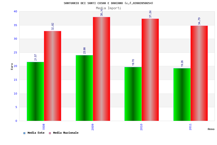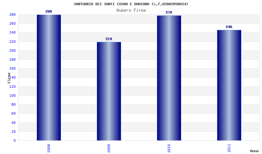 | Anno | Firme | Importi | Media | Naz. | Reg. | Prov. | Comu. |