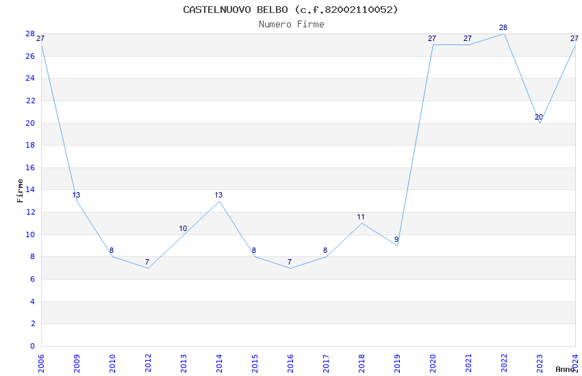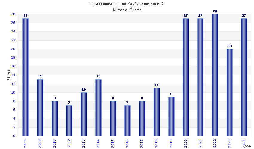 | Anno | Firme | Importi | Media | Naz. | Reg. | Prov. | Comu. |