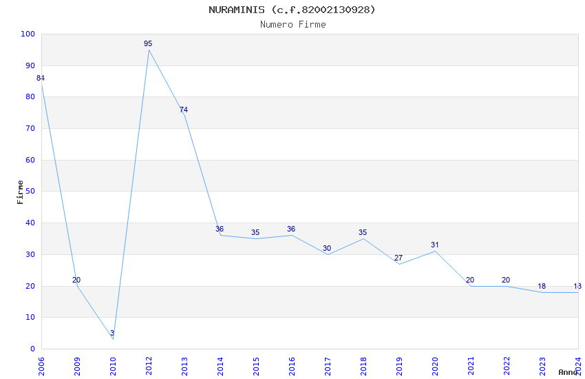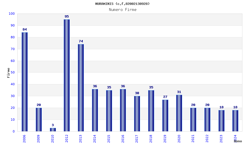 | Anno | Firme | Importi | Media | Naz. | Reg. | Prov. | Comu. |