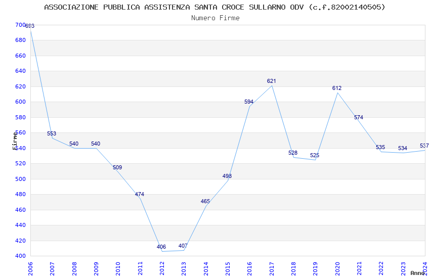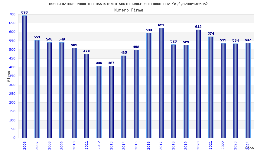 | 2006 | 693 | 17.553,60 | 25,33 | 2.169 | 134 | 20 | 1 |
