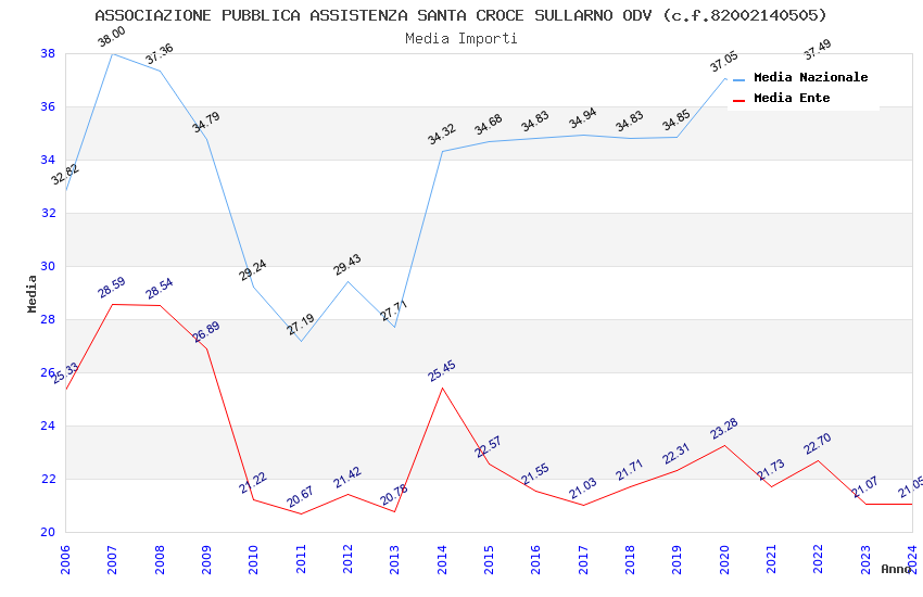 | Anno | Firme | Importi | Media | Naz. | Reg. | Prov. | Comu. |