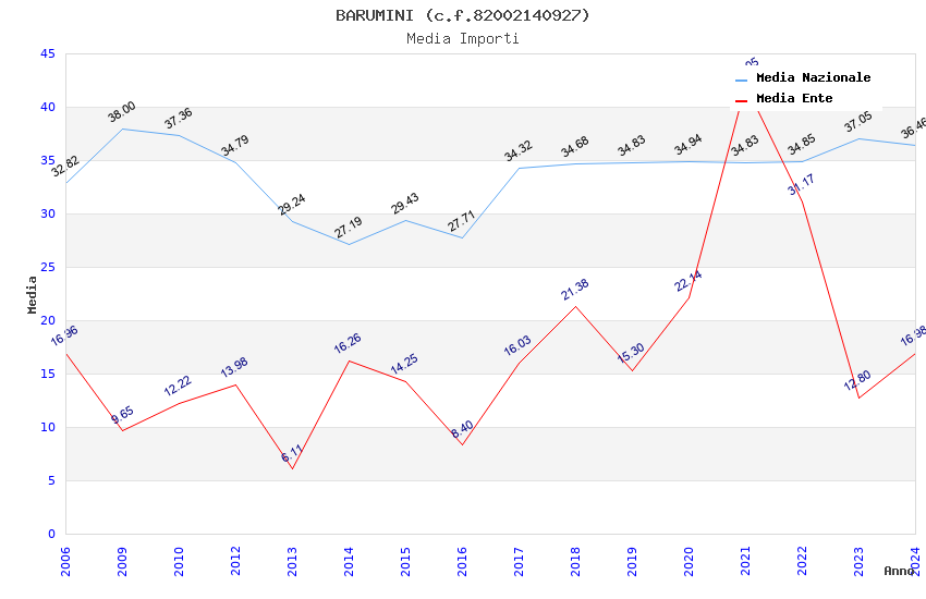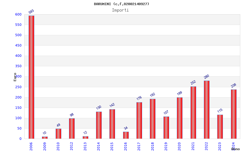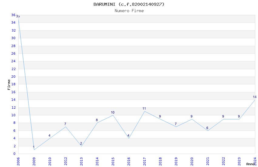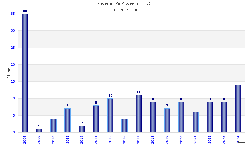 | Anno | Firme | Importi | Media | Naz. | Reg. | Prov. | Comu. |